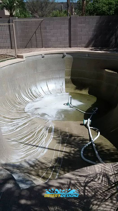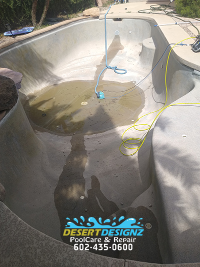 | Every couple of years it is recommended the water in a pool be completely drained out and refilled with new fresh water. The weekly addition of chemicals and constant bombardment from Arizona's dirt causes water to go stale and the water will not respond to normal chemicals after awhile. If you find you're having to shock your pool every week or your cyanuric acid levels are over 250ppm, it may be time to change the water out. This job requires a waiver for insurance purposes.