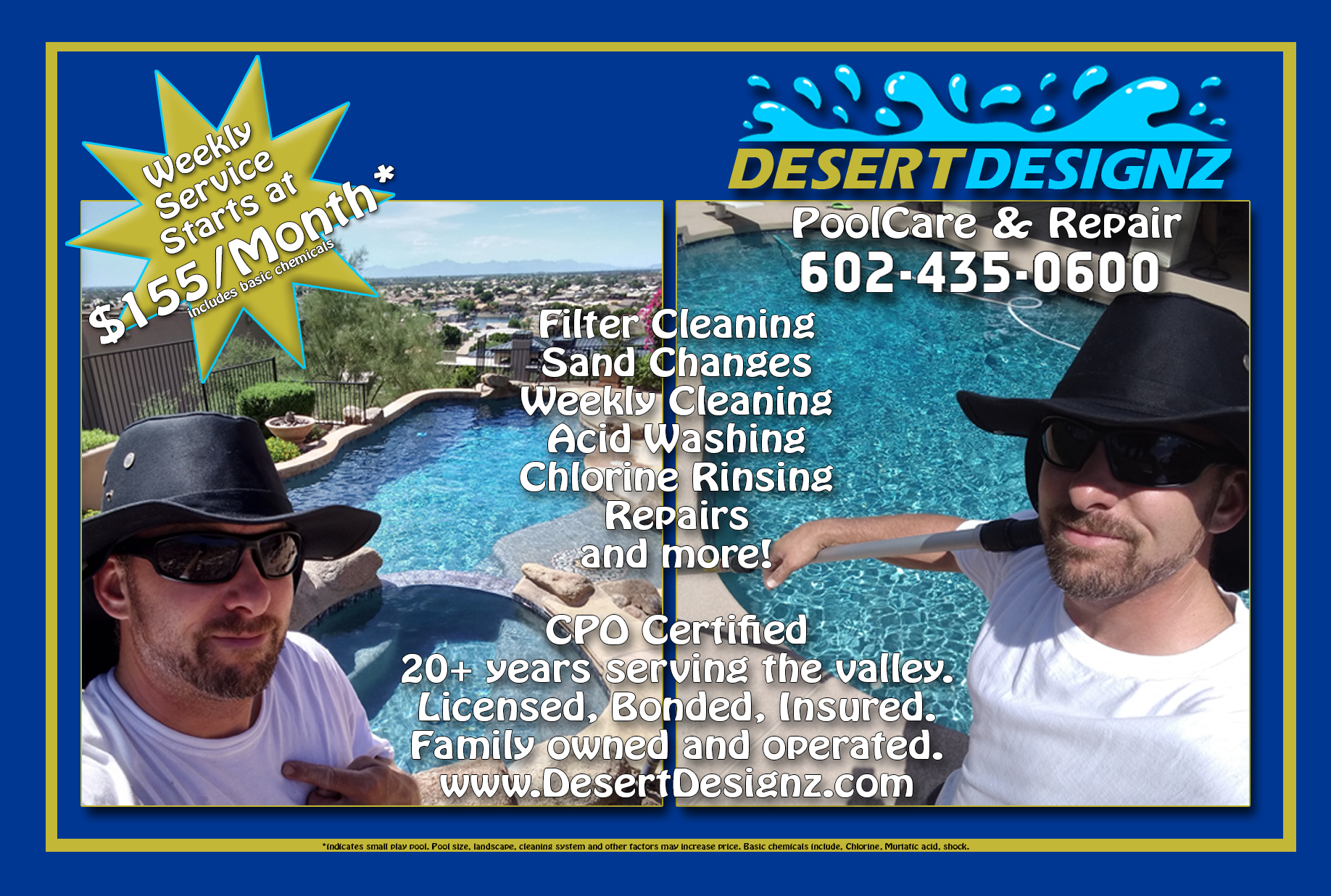 Copyright © 2025, Desert Designz Pool Care & Repair llc Licensed, Bonded, Insured ROC#350623 Website by Robert of Desert Designz
